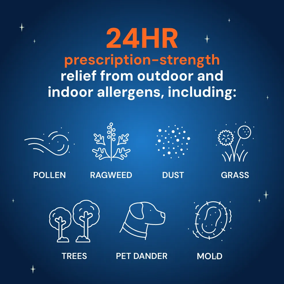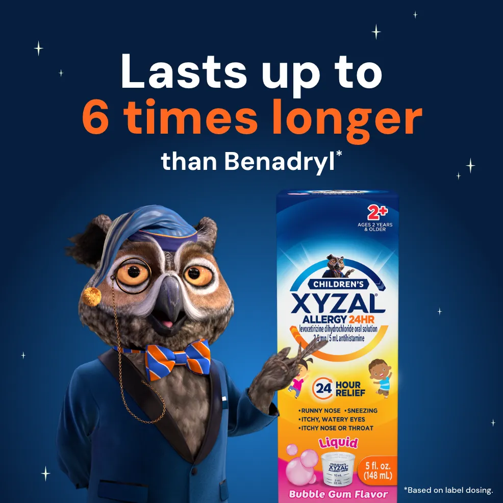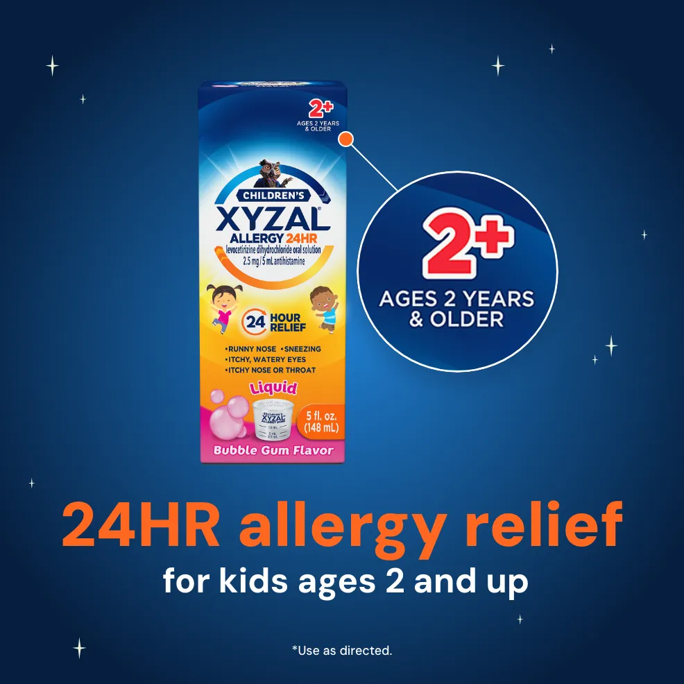 Whether they’re facing indoor or outdoor allergens, XYZAL® allergy medication for kids starts working in as little as 45 minutes and keeps them feeling great all night and day with no-fade relief.